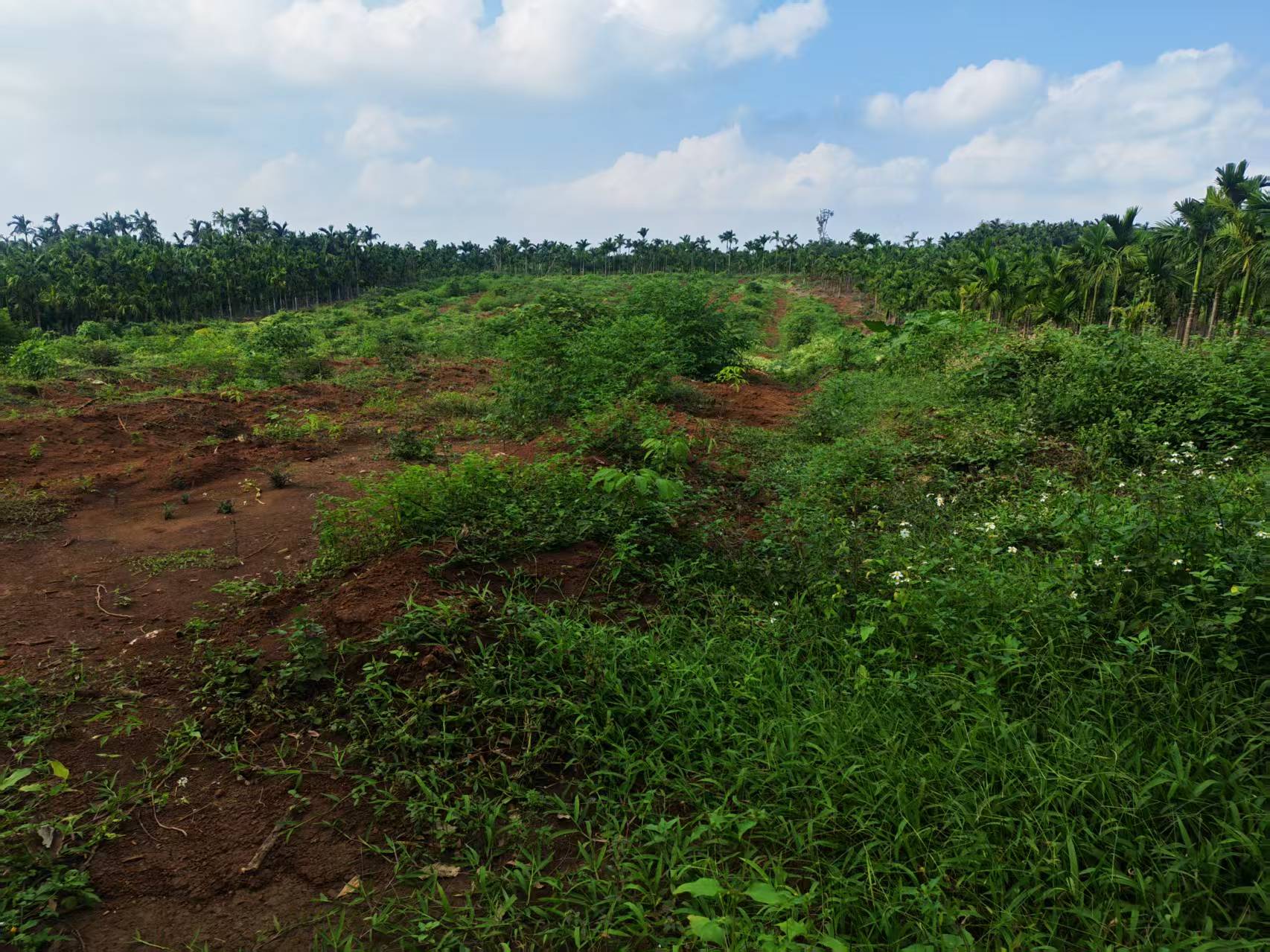 1、该出租地块于2025年已完成更新定植橡胶38.5亩,定植橡胶株行距类型为7*2.8M,郁闭度均为0级。地貌类型多为台地或丘地,土壤质地为砖红壤,坡度在5度以下,基础设施条件灌溉水源基本满足,重开沟渠可基本满足排水需要;临路状况为临近乡道、水泥硬化道路;通电便捷程度为2公里内有供电设施。依据《海胶集团国有农用地租金指导价成果报告》中评分标准,经实地打分,评定该宗地块为郁闭度0级的一级林下土地。