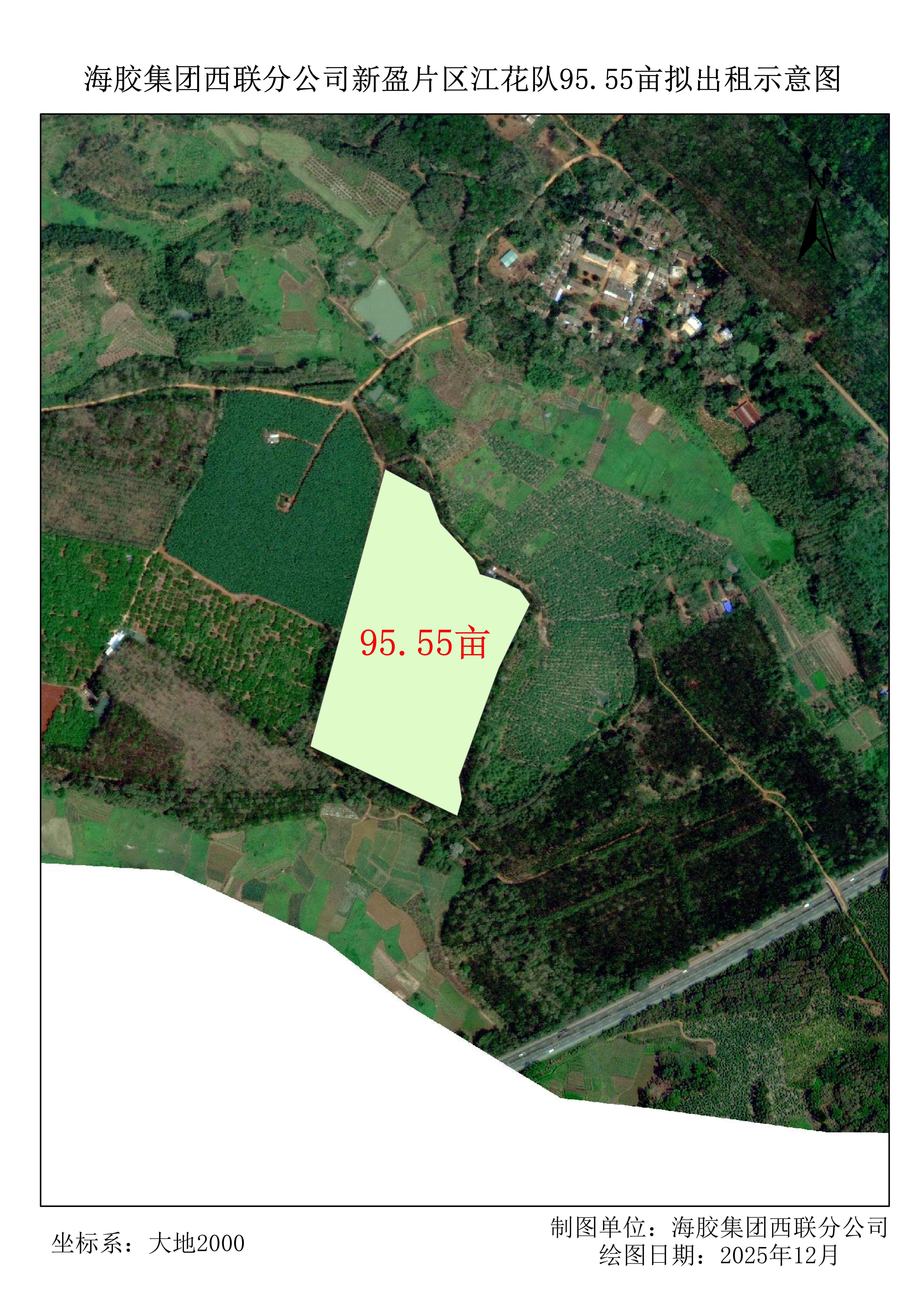 1、该地块于2025年8月完成更新定植95.55亩,定植橡胶株行距类型为窄行(7*3M),郁闭度0级,该地块间种矮杆作物须距离橡胶树头1米以上,高杆作物距离橡胶树头2米以上,间种作物要求严格按照海胶集团《胶园林下土地短期租赁管理办法》及橡胶非胶作物技术规范文件标准执行。