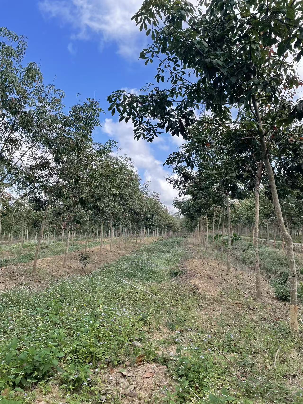 2、常规模式种植橡胶的林下土地间种作物主要以短期、草本、低矮冠幅作物为主。采取宽/大行模式的胶园林下土地不得间种与橡胶争夺同一生长空间的长期作物,如芒果、龙眼、荔枝、椰子、槟榔等高杆木本作物。