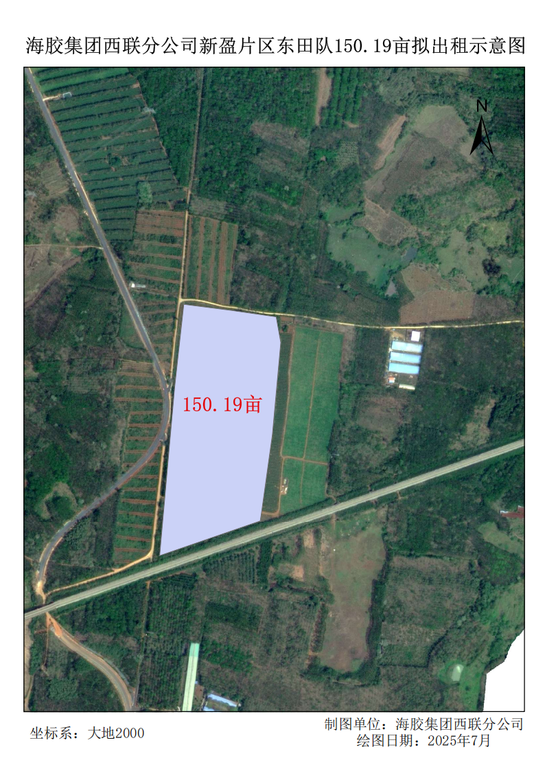 1、该地块于2025年7月完成更新定植150.19亩,定植橡胶株行距类型为窄行(7*3M),郁闭度0级,该地块间种矮杆作物须距离橡胶树头1米以上,高杆作物距离橡胶树头2米以上,间种作物要求严格按照海胶集团《胶园林下土地短期租赁管理办法》及橡胶非胶作物技术规范文件标准执行。